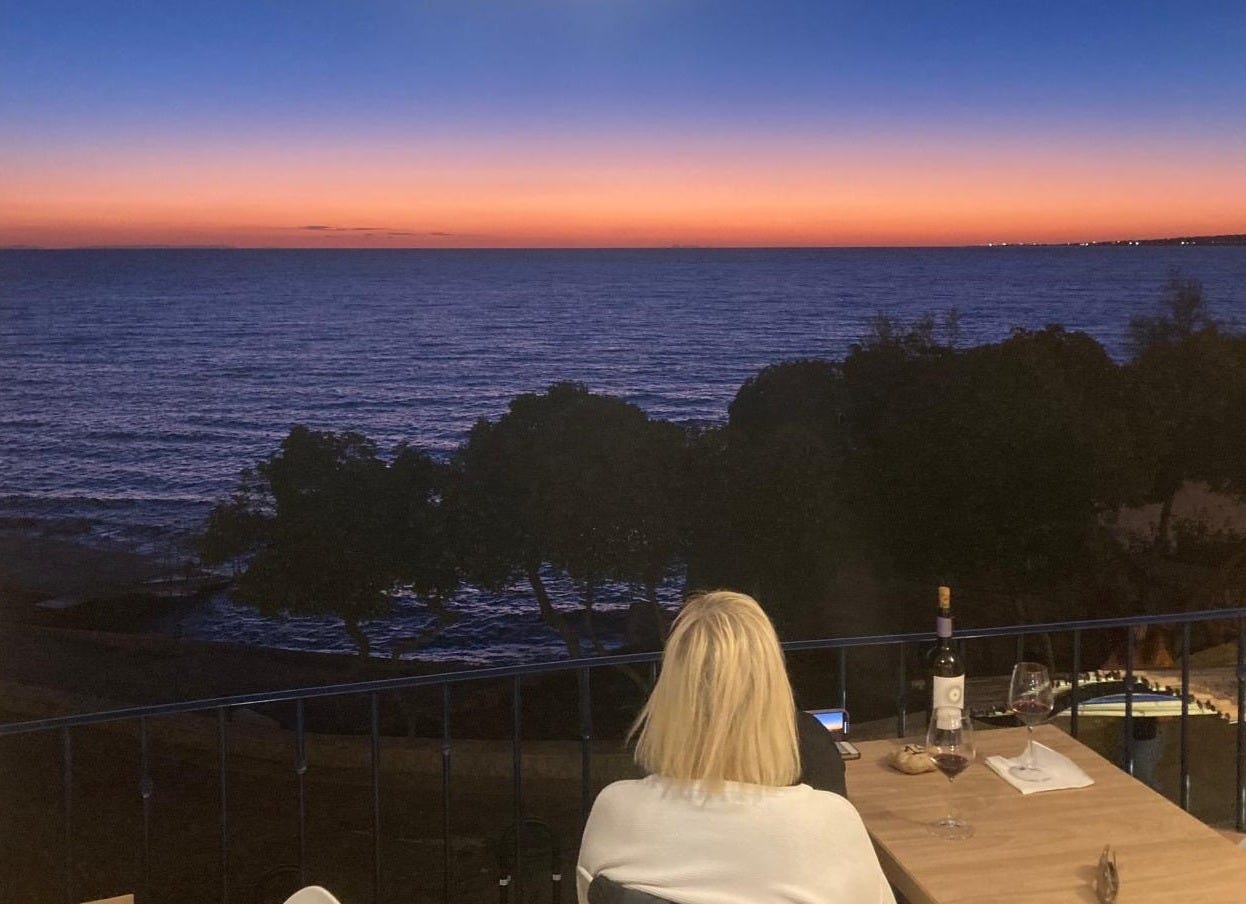 By the end of that sunset, she had introduced us to her husband—an intense, magnetic man who promptly invited us to a dinner party the next night (using Italian + French + hand gestures).